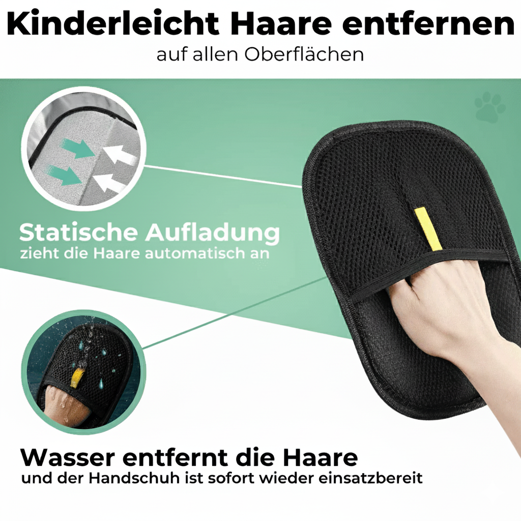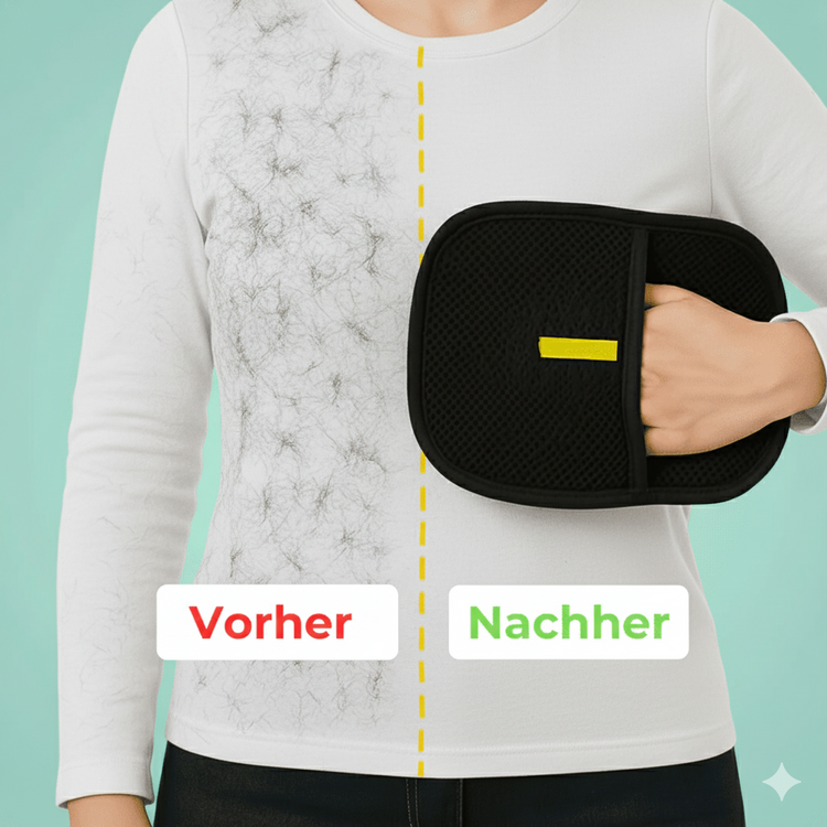 Einmal über Stoffe oder Polster gestrichen & schon bleiben Haare und Fusseln haften. Danach einfach mit Wasser abspülen – fertig!