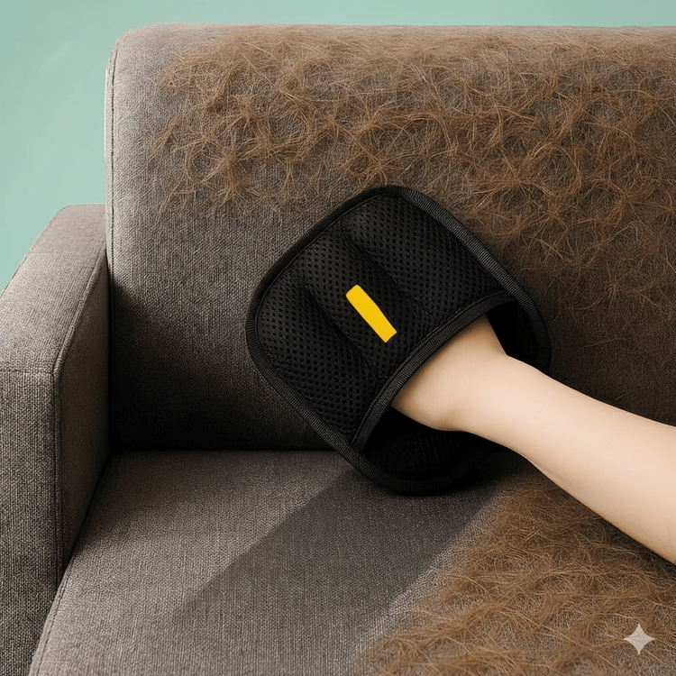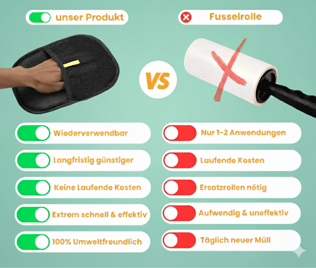 Erlebe, wie der Fluff-Off Tierhaare wie von Zauberhand von Sofas, Kleidung und Polstern löst.